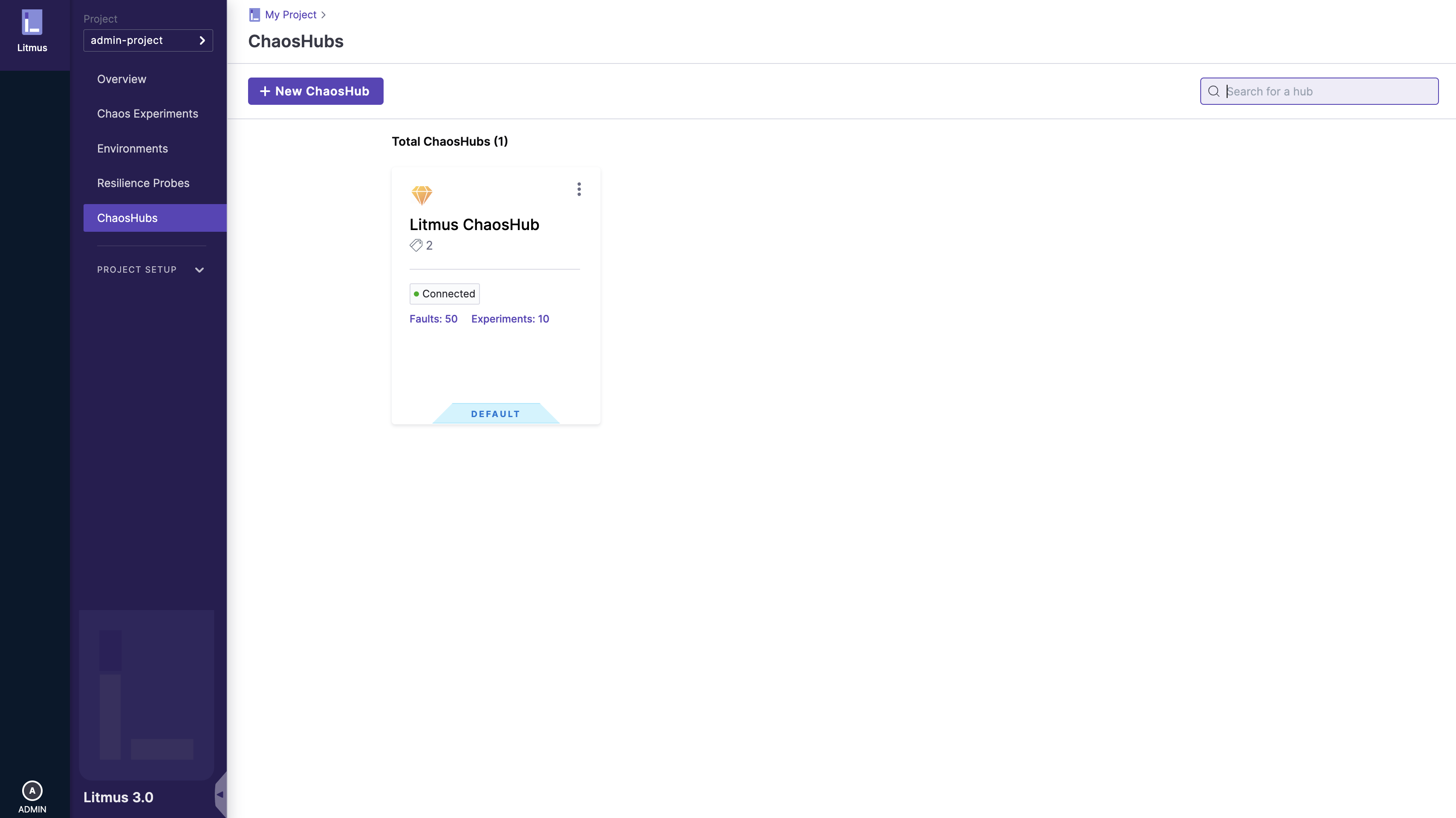 By default, a Public ChaosHub is provided when the ChaosCenter is installed for the first time.